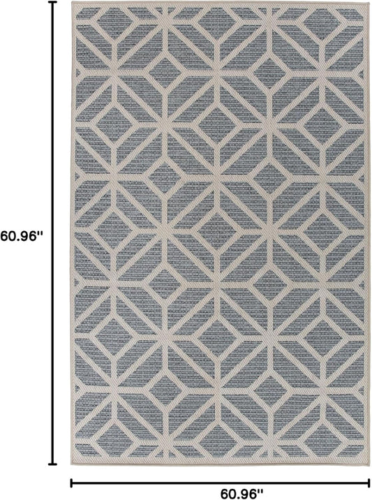 Rugshop Contemporary Geometric Design for Patio Rugs,Deck Rugs,Balcony Rugs Indoor/Outdoor Area Rug 5' x 7' Blue