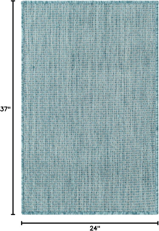 Unique Loom Collection Casual Transitional Solid Heathered Indoor/Outdoor Flatweave Area Rug (2' x 3' 1" Rectangle, Aquamarine/Ivory)