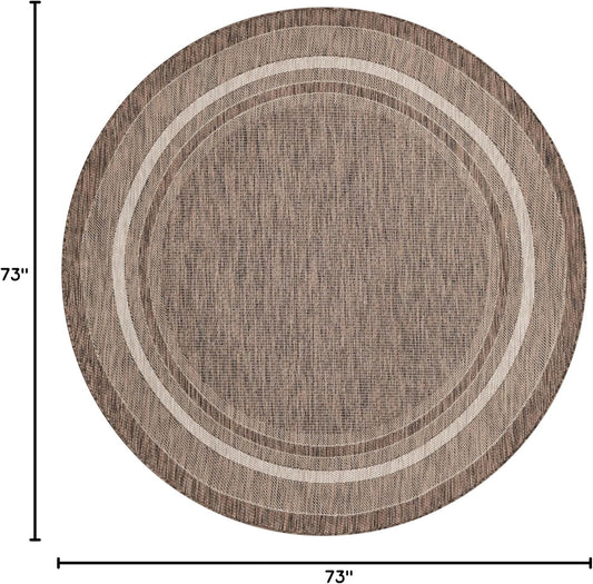 Unique Loom Outdoor Border Collection Area Rug - Soft Border (6' 1" Round Brown/Ivory)