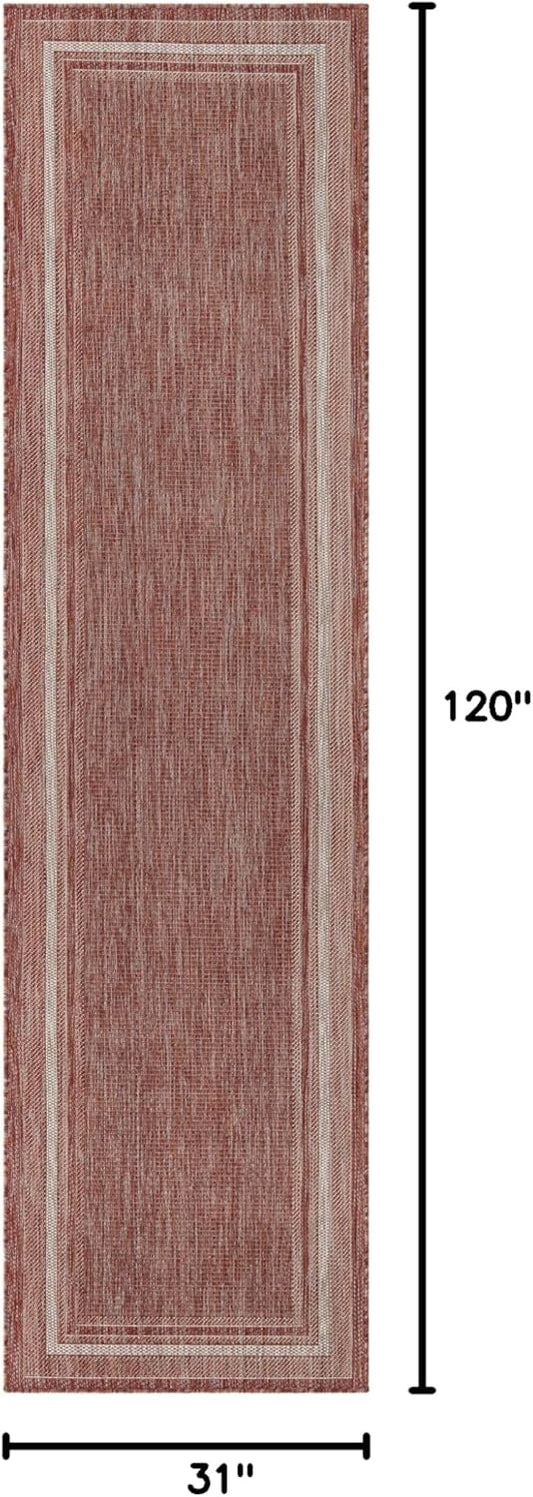 Unique Loom Outdoor Border Collection Area Rug - Soft Border (2' 7" x 10' Runner, Rust Red/ Ivory)