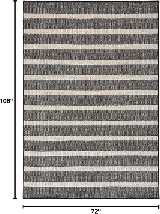 Nourison Home Positano Indoor/Outdoor Black Ivory 6' x 9' Area Rug, Easy Clean, Non Shedding, Bed Room, Living Room, Dining Room, Deck, Backyard, Patio (6x9)