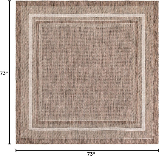 Unique Loom Outdoor Border Collection Area Rug - Soft Border (6' 1" Square Brown/Ivory)