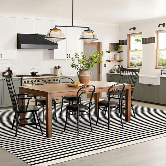 IOHOUZE Black Beige Striped Rug -8'x10' Indoor Outdoor Rug, Washable Area Rug for Living Room, Large Patio Rug, Cotton Striped Rugs for Patio Living Room Bedroom