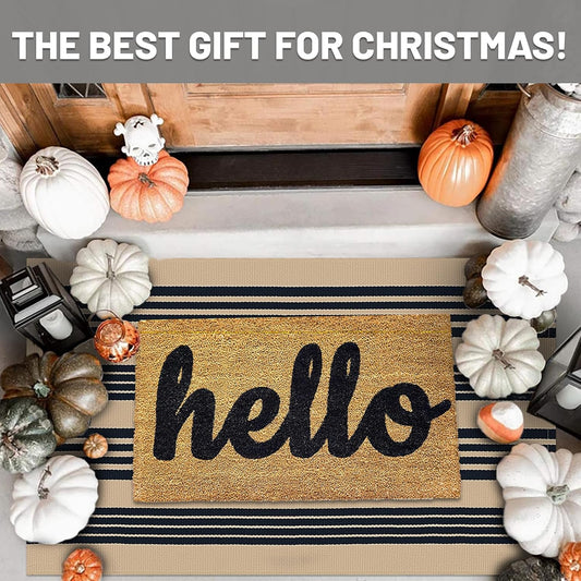IOHOUZE Grey White Striped Rug -27.5" X 43" Front Door Mats Outdoor,Washable Rug for Front Porch Decor,Spring Summer Welcome Mats Outdoor Indoor, Doormat for Farmhouse/Entryway/Home Entrance