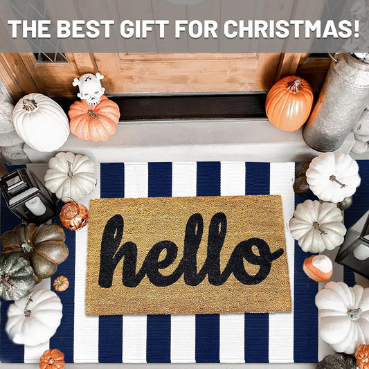 IOHOUZE Navy White Striped Rug -3x5 Front Door Mats Outdoor,Washable Rug for Front Porch Decor,Spring Summer Welcome Mats Outdoor Indoor, Doormat for Farmhouse/Entryway/Home Entrance