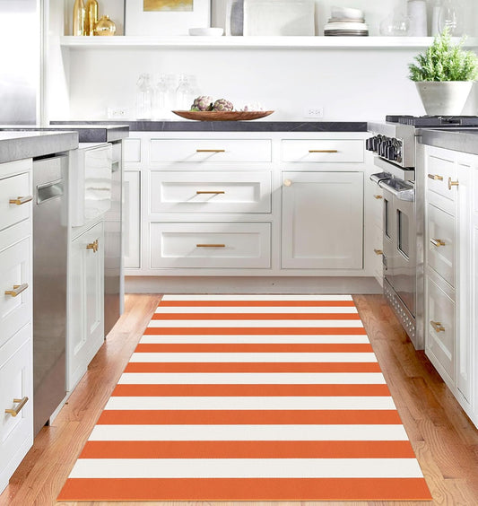 IOHOUZE Fall Door mat 4x6 Ft Orange White Striped Area Rug Washable Front Porch Rug Striped Door Mat Outside Entrance Entryway Doormat for Fall, Halloween, Thanksgiving Porch Decor