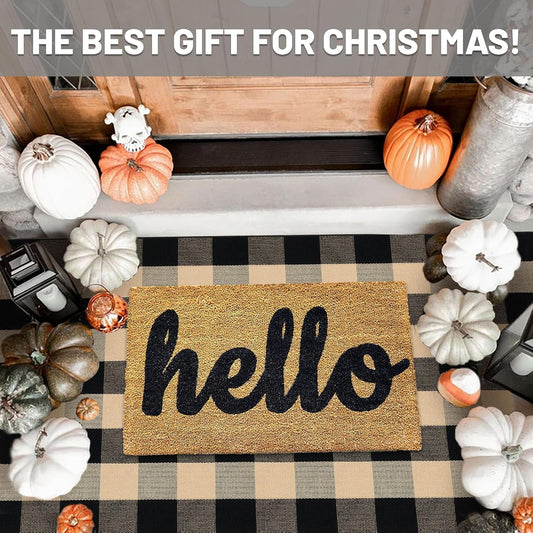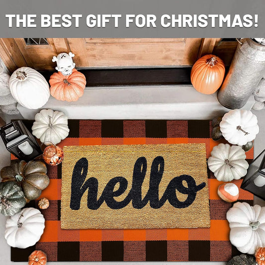 IOHOUZE Fall Buffalo Plaid Check Rug Outdoor Doormat 27.5 x 43 Inches Washable Woven Outdoor Indoor Welcome Mats for Front Door/Farmhouse/Entryway/Home Entrance Black and Orange Outdoor Rug