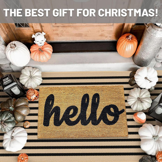 IOHOUZE Black Beige Striped Rug -3'x5' Front Door Rugs Outdoor, Washable Area Rug for Front Porch, Spring Summer Welcome Mats Outdoor Indoor, Doormat for Entryway Porch Entrance