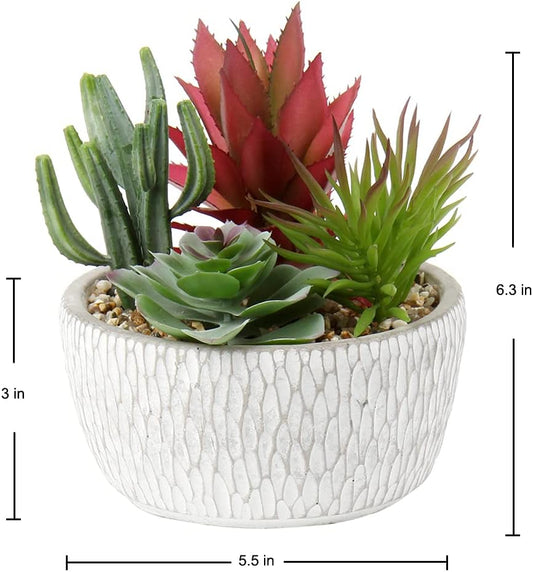 Round Faux Succulent Arrangement, 14" Premium Artificial Indoor Plant Enhances Interior Design, Display on Any Surface in Your Home Adding an Inviting Touch of Nature, Natural Planter Pot Included