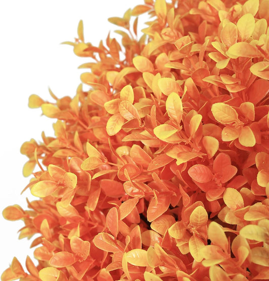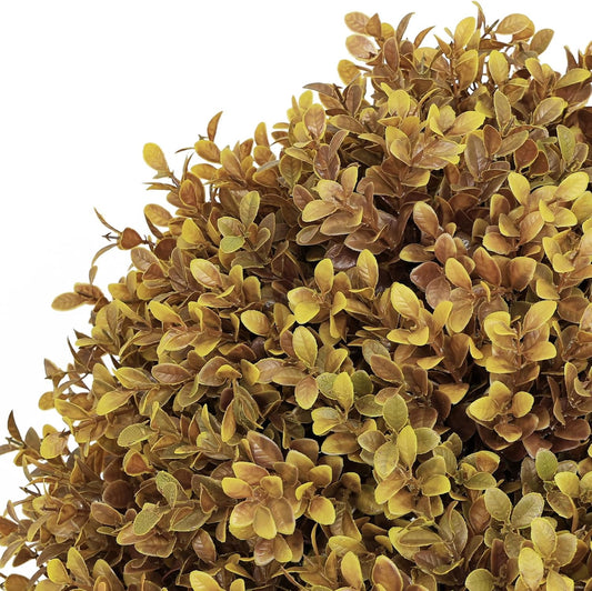 24" Tall Artificial Boxwood Ball Fall Topiary Trees Set of 2, UV Resistant Large Faux Plants Outdoor, 2ft Fake Bushes and Shrubs Look Real with Stake for Front Porch Outside Planter Backyard Decor