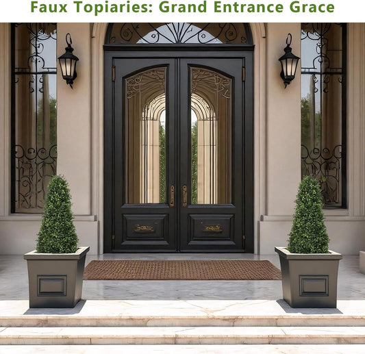 30" Artificial Boxwood Faux Plants Outdoor, UV Resistant Topiary Trees Realistic Cone-Shaped Fake Bushes and Shrubs Potted Fakeplants Set of 2 for Front Porch Patio Outside Planter Decor
