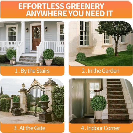QIANYUN Artificial Topiary Trees Outdoor – 18 Inch Fake Boxwood Plants, UV Resistant Faux Shrubs for Outdoor/Indoor Decor, Perfect for Porch, Garden, Backyard