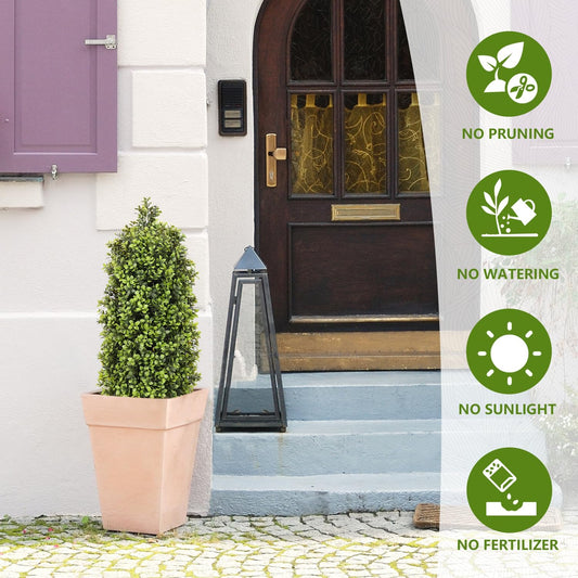 27“ Realistic Artificial Boxwood Topiary Trees Set of 2, Faux Boxwood Plants Outdoor UV-Resistant, No Maintenance Curb Appeal Fake Evergreen Bushes & Shrubs for Front Porch Outside Planter Decor