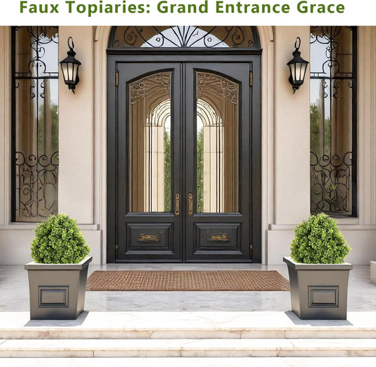 THE BLOOM TIMES 2ft Faux Boxwood Plants Outdoor Set of 2, Topiary Balls Artificial Outside Trees, 24" UV Resistant Fake Greenery Bushes & Shrubs for Front Porch Planter