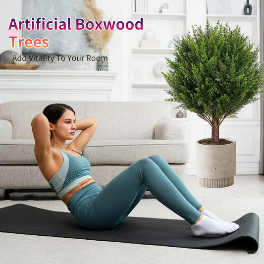 Artificial Cedar Shrub Ball Trees Two 15.8inch with Ground Spikes, can be Planted in The Ground and in pots, Outdoor Artificial Plants Resistant to UV Rays