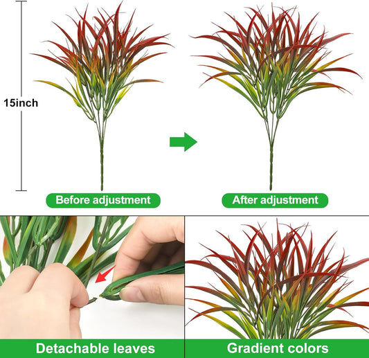 Ouddy Decor 16 Bundles Artificial Plants Outdoor Fake Grass Greenery Stems UV Resistant Faux Plastic Plants Shrubs for Autumn Home Garden Pathway Farmhouse Front Porch Harvest Thanksgiving Decor, Red