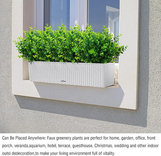 Artificial Plants Flowers Grass Shrubs 8 Pack No Fade Faux Plastic Flowers Outdoor for Farmhouse Garden Porch Patio Indoor Wedding Decoration Greenery Fake Plants uv Resistant
