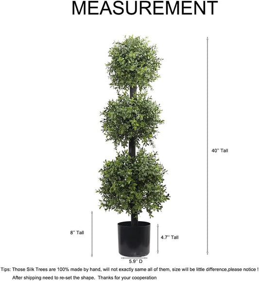 38''T Artificial Boxwood Topiary Triple Ball Outdoor Potted Plants Anti-UV Front Door Decor 2Pack