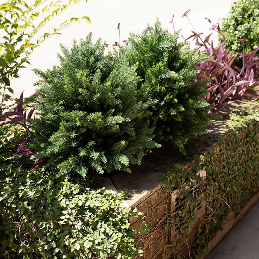 Premium 16" Diameter Artificial Cypress Topiary – Set of 2 Faux Plants with Ground Spikes – UV-Resistant, Realistic Outdoor & Indoor Greenery – Weatherproof Garden Landscaping Décor