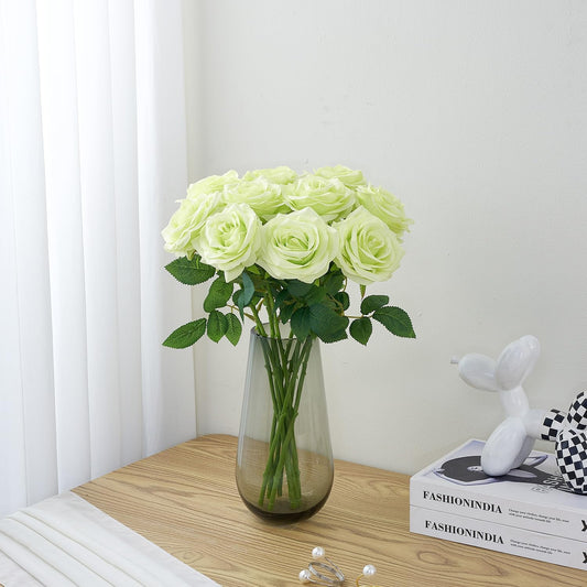 Artificial Rose 10pcs Open Flower Bouquet Faux Rose Stems for Wedding Arrangement, Bridal Bouquet, Centerpiece, Fake Faux Silk Flowers (Pale Green)