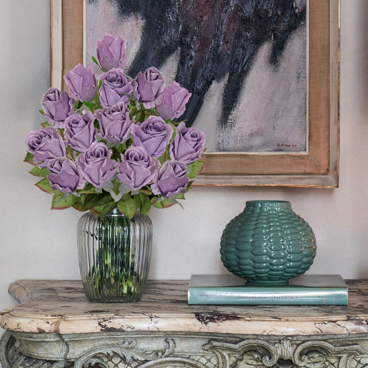 N&T NIETING Artificial Flowers Purple Roses, 25Pcs Fake Flowers Foam Roses with Stems for DIY Wedding Bridesmaid Bridal Bouquets Centerpieces Party Home Decoration Baby Shower