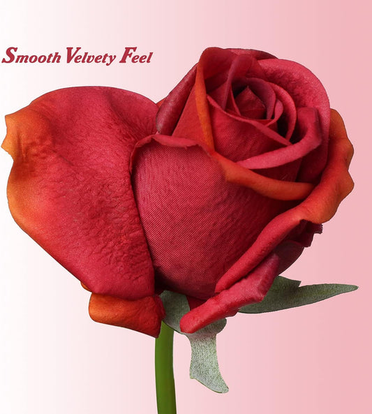 N&T NIETING Artificial Flowers 50pcs Real Touch Faux Flowers Bulk with Stems for DIY Wedding Bouquets Bridal Shower Centerpieces Floral Arrangements Party Valentine's Day Home Decorations(Series Red)