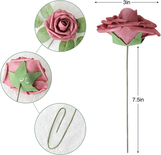 Rose Pink Artificial Roses Fake Flowers Not Bend The Peduncle with Stems for DIY Wedding Bouquets Bridal Shower Centerpieces Arrangements Tables Decorations 24pcs