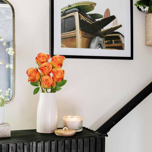Briful Roses Artificial Flowers– 6PCS 18.9" Orange Rose Silk Flowers with Long Stems Realistic Fake Rose Bouquet for DIY Wedding Arrangements Table Vase Centerpieces Home Event Decor