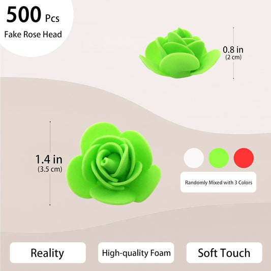 500 Pcs 1.4 Inch Mini Artificial Flowers Head Bulk 5 in 1 Set Faux Foam Fake Small Rose Tiny Baby Flores Bouquet Cake Gift Home Decoration DIY Craft (Coral Red, Green, White Mixed)