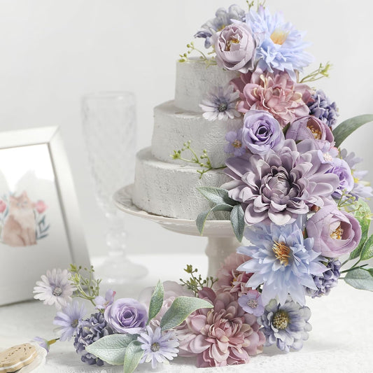 YYHUAWU Artificial Flowers Heads Combo Purple Flowers Mix Silk Flowers Dahlia Roses for DIY Wedding Bridal Bouquets, Baby Shower, Floral Arrangement, Table Centerpieces, Home Decorations.