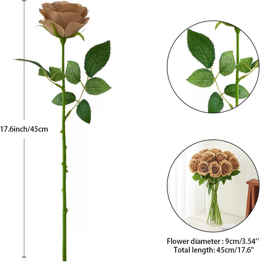 12pcs Coffee Roses Artificial Flowers Fake Roses Silk Flowers Roses with Long Stems for Wedding Home Party Centerpieces Decorations