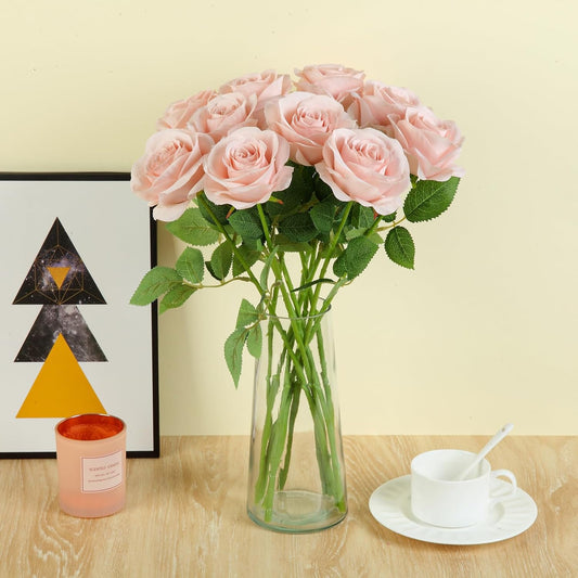 12pcs Blush Roses Artificial Flowers Fake Roses Silk Flowers Roses with Long Stems for Wedding Home Party Centerpieces Decorations