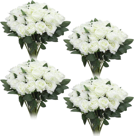 36 Pcs Silk White Rose Bouquet Bridal Artificial Flowers,Fake Rose Long Stem Realistic Artificial Flowers Bulk for Wedding Bouquet Ball Arrangement Centerpiece Party Decor