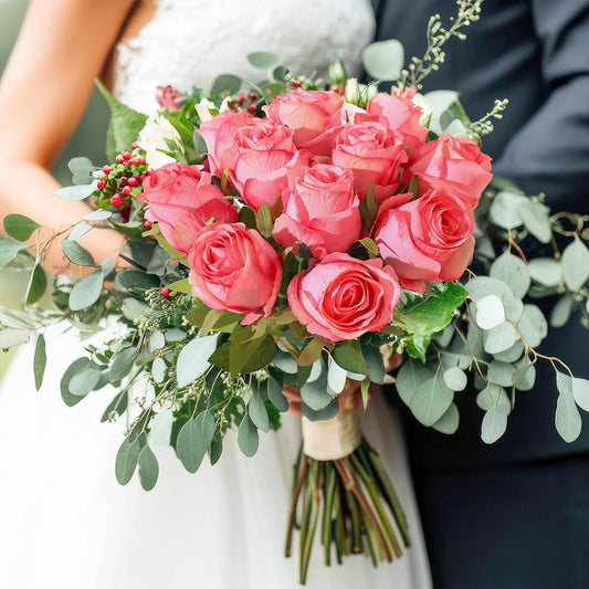 12Pcs Realistic Fake Dark Pink Roses Faux Flowers with Long Stems, Artificial Silk Rose Flowers for Valentines Day Home Wedding Decor Bridal Bouquet