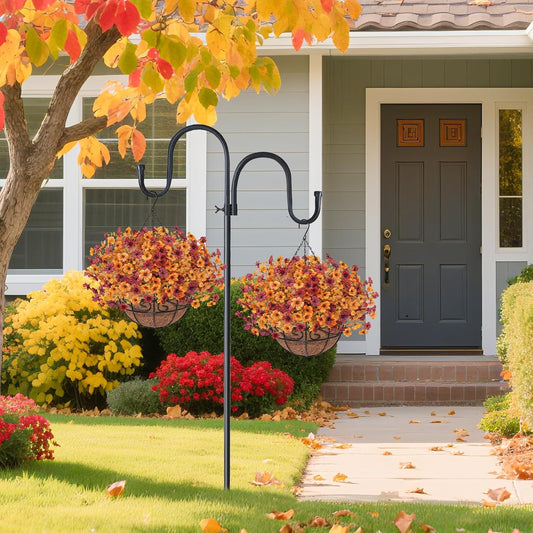 2Pack Fall Artfiticial Hanging Flowers Baskets for Outdoors, UV Resistant Fake Fall Hanging Plants, Faux Orange Flowers for Autumn Home Patio Front Porch Balcony Decor (Yellow Red)