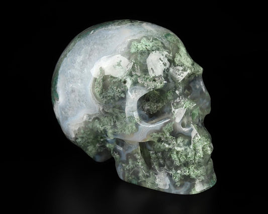 Skullis 5.0" Green Moss Agate Crystal Skull, Hand Carved Gemstone Fine Art Sculpture, Reiki Healing Stone Statue.2057