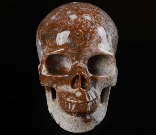 Skullis 5.0” Red Moss Agate Crystal Skull, Hand Carved Gemstone Fine Art Sculpture, Reiki Healing Stone Statue.1386 Z8