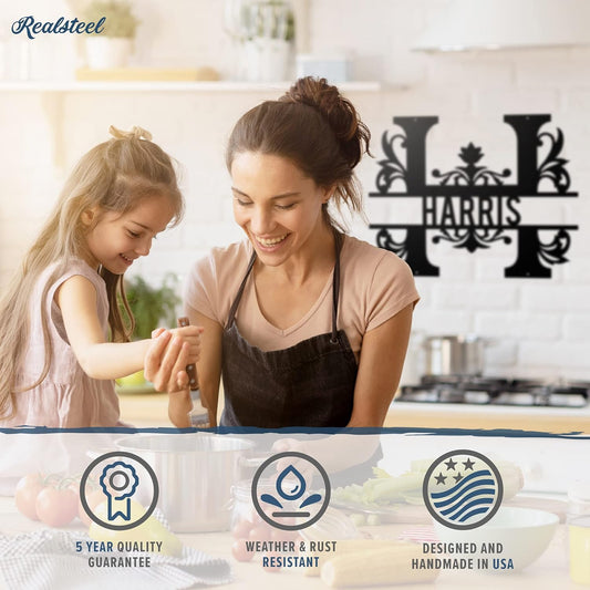 RealSteel, Metal Name Sign, Custom Metal Signs, Metal Wall Art, Split Letter Monogram, Metal Wall Decor, Last Name Sign, Family Name Sign, Personalized Wedding Gift, Garden Decor