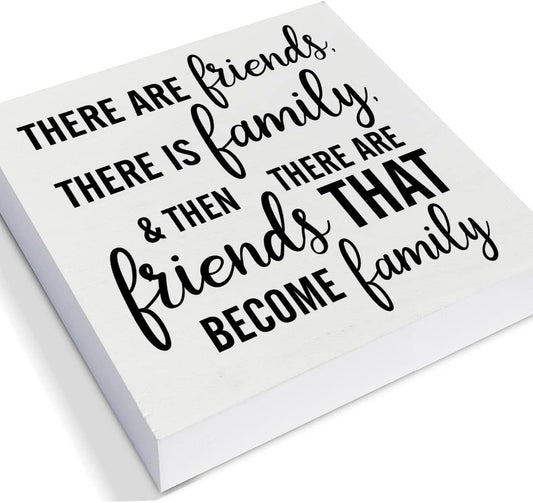 There are Friends There is Family Decorative Wooden Box Sign Friendship Gift Wood Block Plaque Decor Rustic Shelf or Wall Display for Home Living Room Bedroom Gifts for Friend