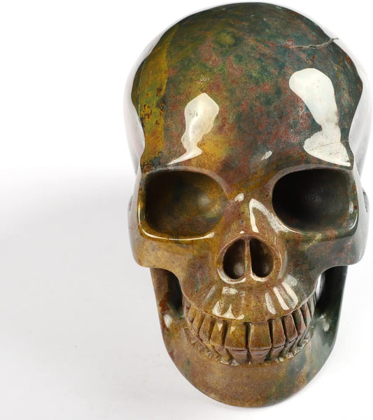 Skullis 5.0” Indian Agate Crystal Skull, Hand Carved Gemstone Fine Art Sculpture, Reiki Healing Stone Statue.361 Z8