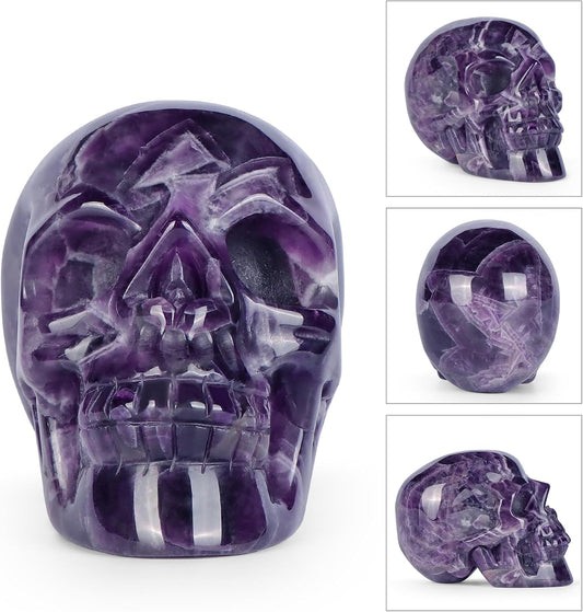 Amethyst Crystal Skull Head Figurine Hand Carved Large Quartz Gemstone Skull Statue Sculpture Decor for Day of The Dead Halloween(3 Inches)