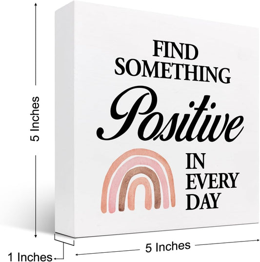 Z-crange Find Something Positive in Every Day Boho Rainbow Wood Block Sign, Rustic Inspirational Wooden Box Plaque for Home College Office Shelf Table Decor