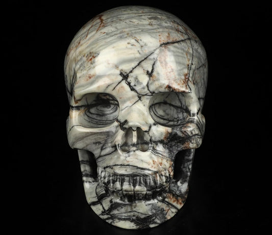 Skullis 5.0”Picasso Jasper Crystal Skull, Hand Carved Gemstone Fine Art Sculpture, Reiki Healing Stone Statue.3160