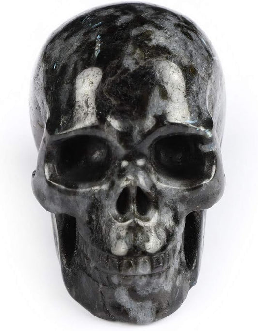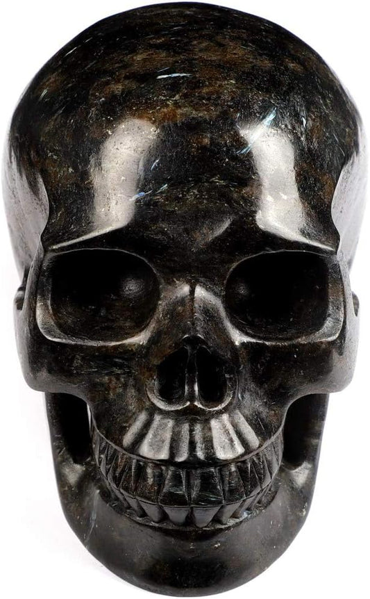 Skullis 5.0" Russian Arfvedsonite Hand Carved Crystal Skull, Super Realistic, Crystal Healing, Hand Carved Gemstone Fine Art Sculpture, Reiki Healing Stone Statue. z8