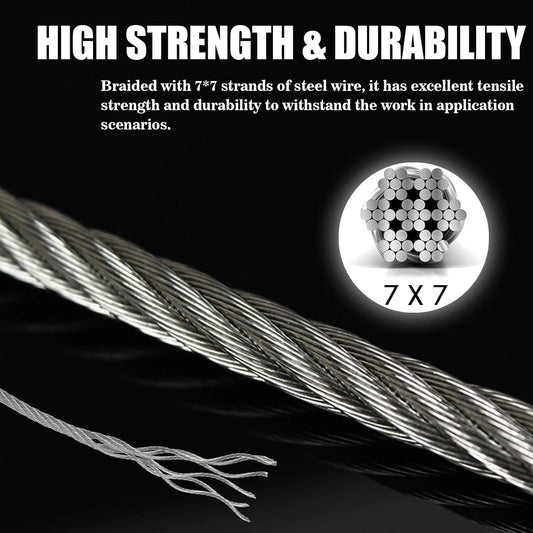165FT Steel Cable Kit | M5 Turnbuckle & 1/8" Stainless Steel Wire Rope