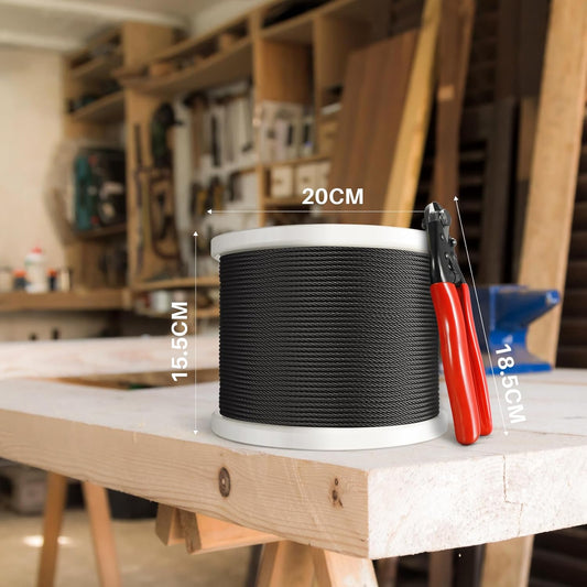 1000FT 1/8" Black T316 Stainless Steel Cable, 7x7 Strands Construction, Black Wire Rope Aircraft Cable for Indoor, Outdoor, Deck Fence Railing, and DIY Balustrades