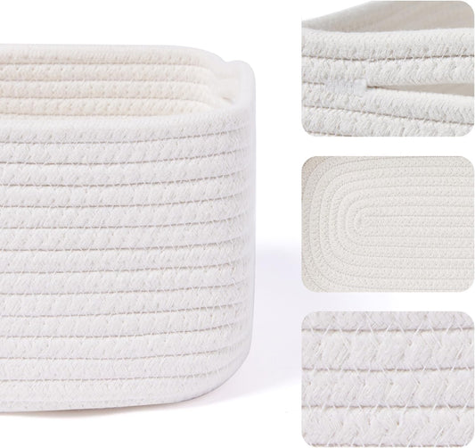 Small Storage Baskets for Organizing | Closet Organizer Bins | Shelf Toy Basket | Woven Rope Baskets | Cube Decorative Box | Shallow Basket | 13x8.5x5.1” | 3 Packs Off White