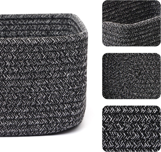Small Storage Baskets for Organizing | Closet Organizer Bins | Shelf Toy Basket | Woven Rope Baskets | Cube Decorative Box | Shallow Basket | 11.5x7.5x4.7” | 3 Packs Dark Gray
