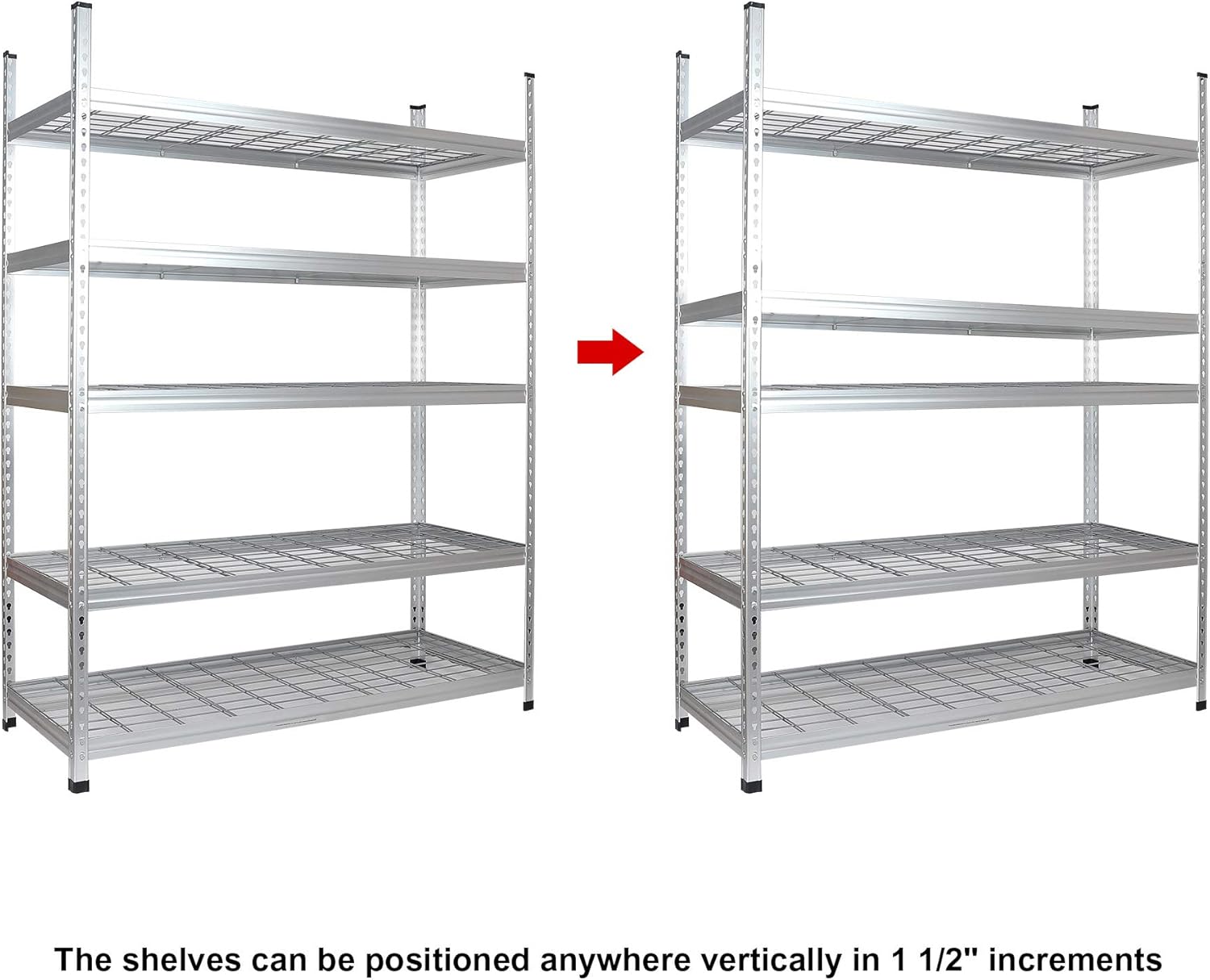 Amazon Basics 4000IBS Heavy Duty Adjustable Storage Shelving Unit, 5 Shelf, High-Grade Aluminum, Silver, 60 x 24 x 78 Inch