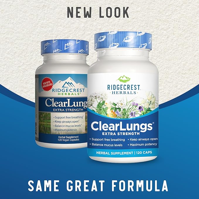 Ridgecrest Herbals ClearLungs Extra Strength, Natural Lung, Nasal Health Formula, Bronchial, Respiratory, Sinus, Mucus Support (120 Caps, 60 Serv)